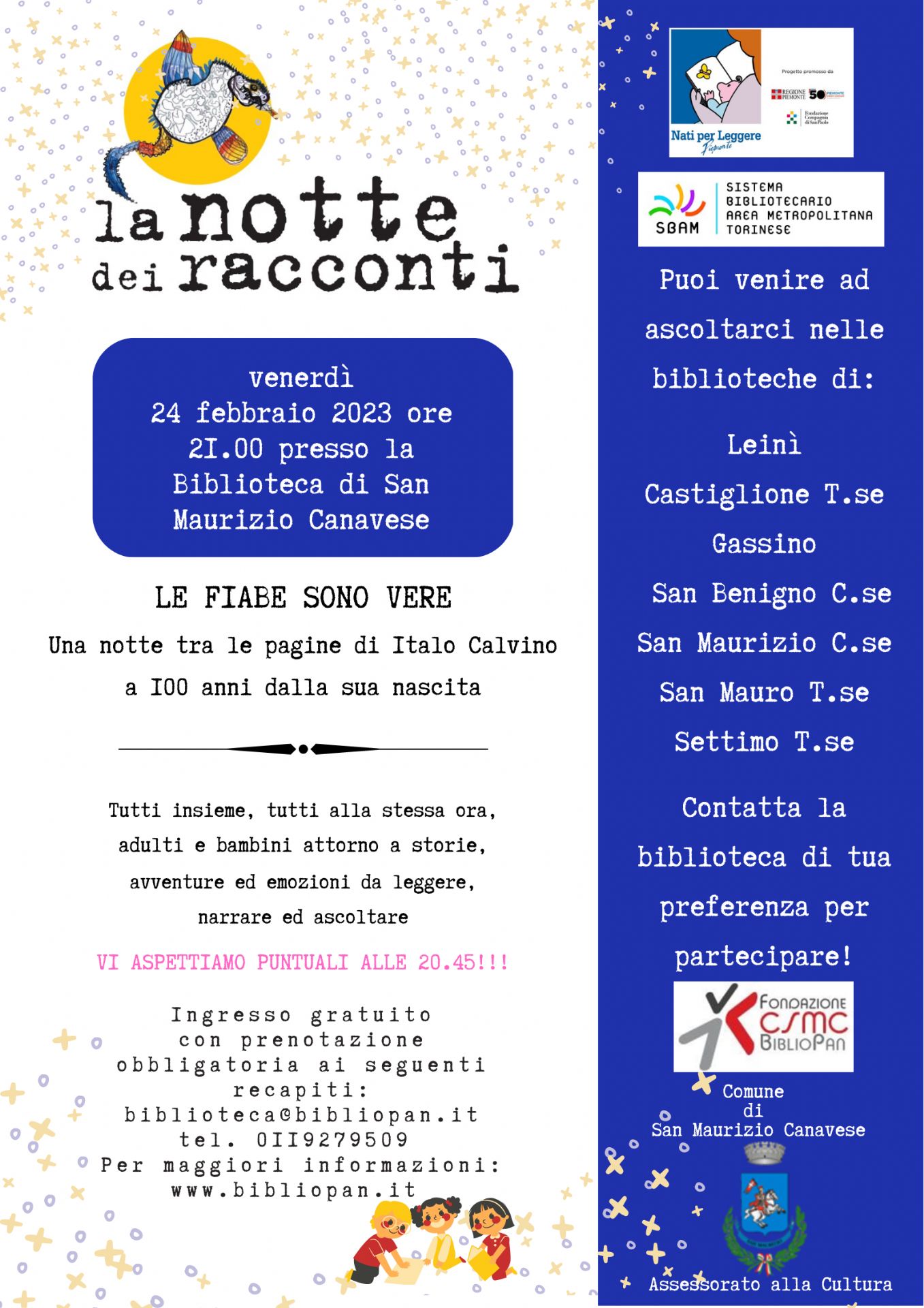 Per celebrare i 100 anni trascorsi dalla nascita di Italo Calvino quest’anno il tema della “Notte dei racconti” sarà “Le fiabe sono vere”.