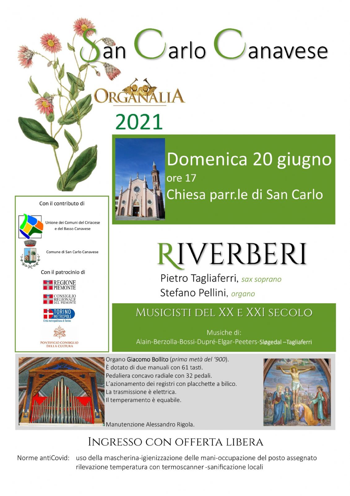 Domenica 20 giugno 2021 presso la Chiesa Parrocchiale di San Carlo Canavese si terrà il concerto "Riverberi" organizzato da Organalia.