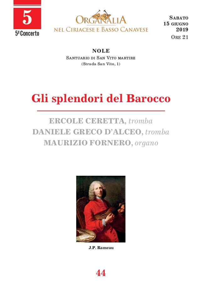 Sabato 15 giugno, alle 21, nel Santuario di San Vito a Nole (Str. S.Vito), si terrà il quinto concerto di Organalia 2019 nel circuito del Ciriacese e del Basso Canavese.
