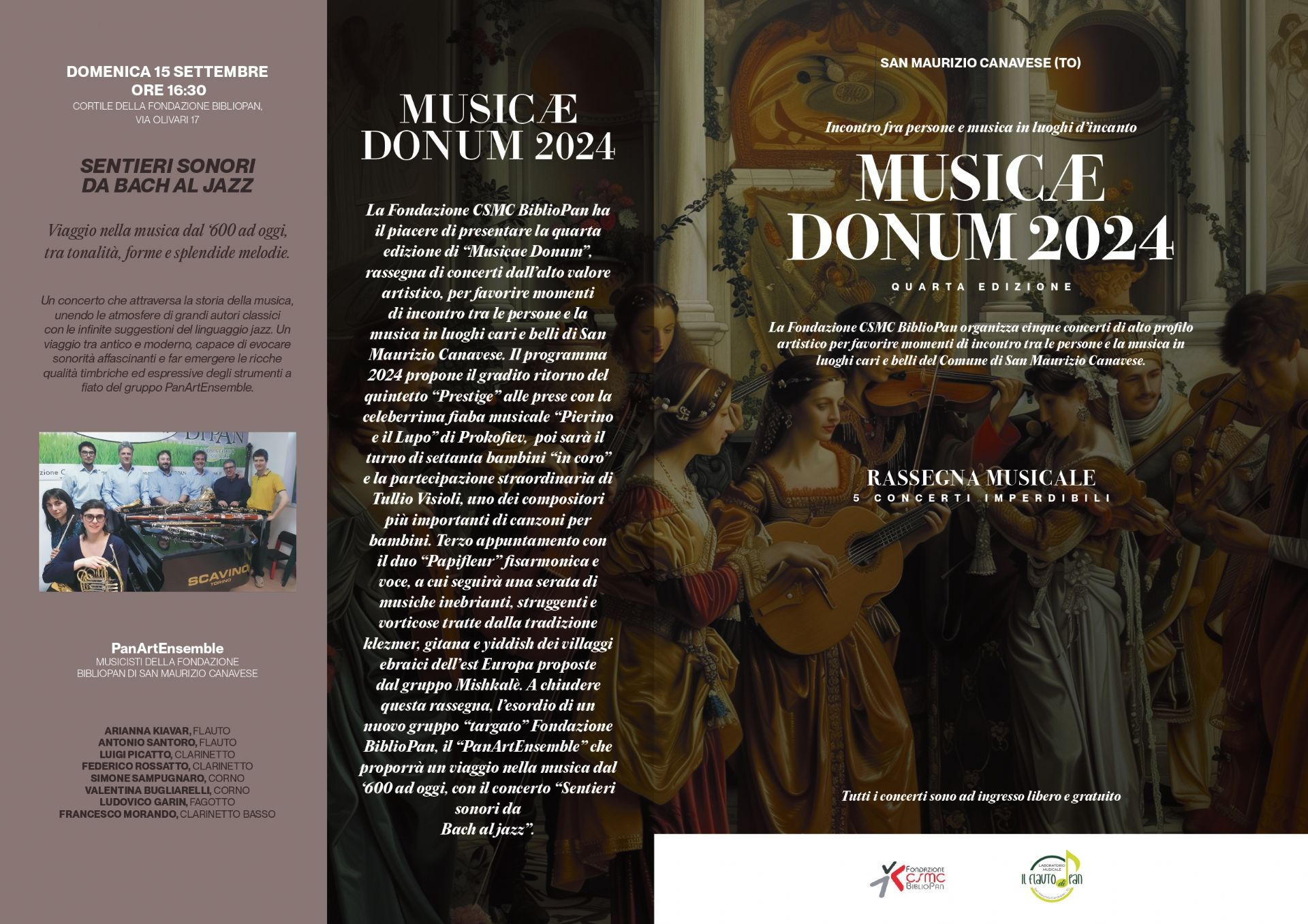 Domenica 15 settembre alle ore 16.30 nel cortile della Fondazione BiblioPan (via Olivari 17), ultimo concerto della quarta stagione di Musicae Donum, la rassegna organizzata dalla Fondazione CSMC BilioPan e dall’Assessorato alla Cultura del Comune di San Maurizio Canavese.