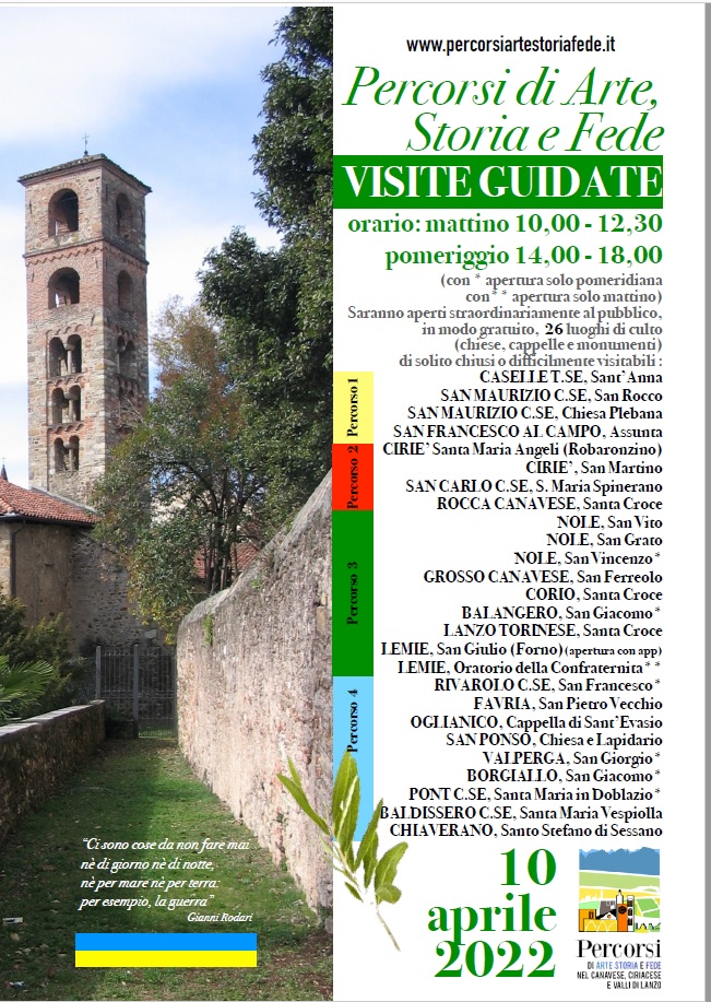 Domenica 10 aprile 2022 si terrà "Percorsi di arte, storia e fede" 2022. Saranno aperti straordinariamente al pubblico, in modo gratuito, 26 luoghi di culto (chiese, cappelle e monumenti) di solito chiusi o difficilmente visitabili.