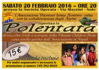 Sabato 20 febbraio 2016 alle ore 20,00 l'Associazione Volontari senza Frontiere, in collaborazione con l'A.N.A. di Nole, presso la Società Operaia di via Mazzini organizza una polentata di raccolta fondi a sostegno della Tikapur Children Home (casa ostello gestita dall'organizzazione in Nepal).