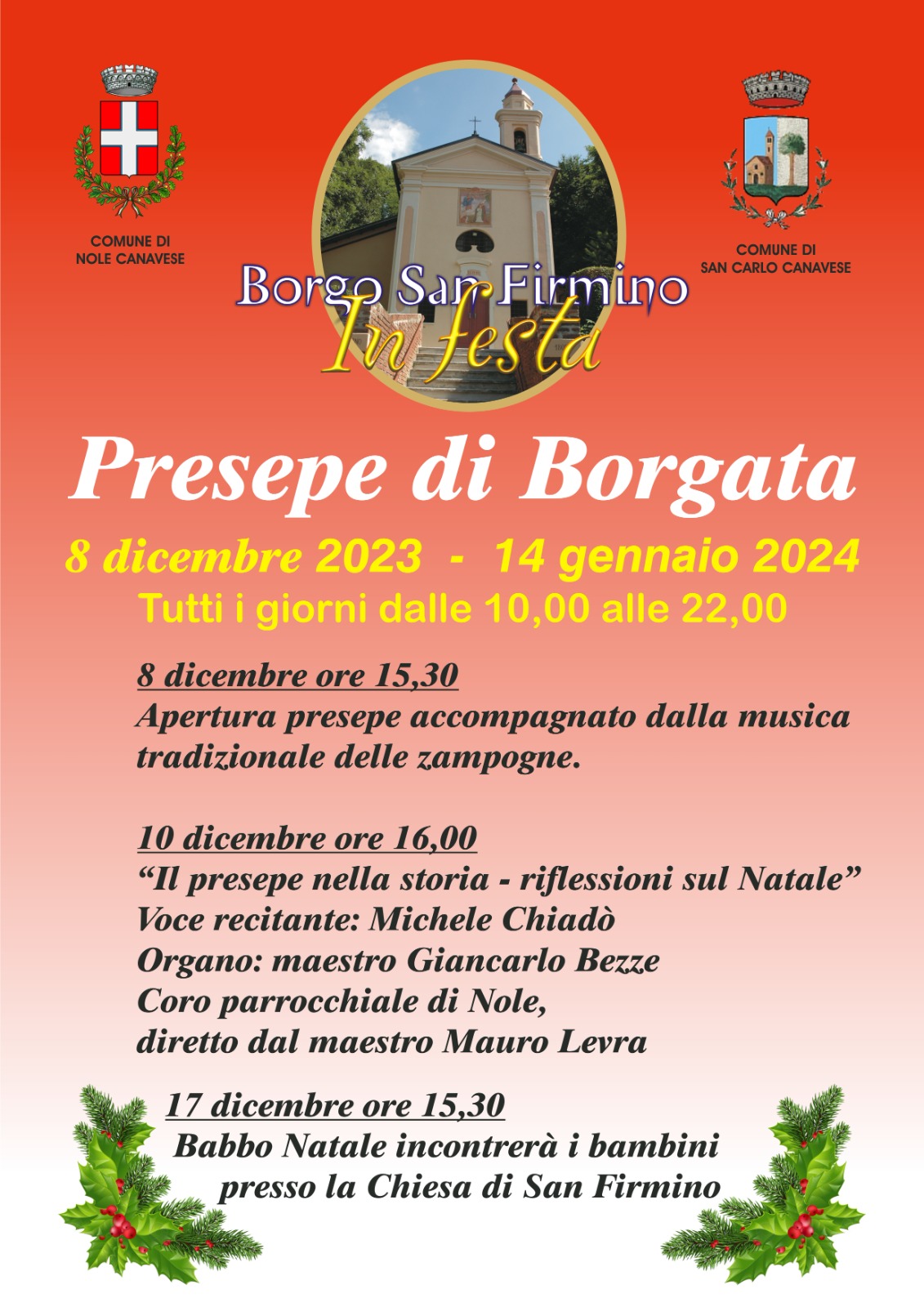 Dall'8 dicembre 2023 al 14 gennaio 2024, dalle ore 10.00 alle ore 22.00, sarà possibile visitare il presepe della Borgata San Firmino.
