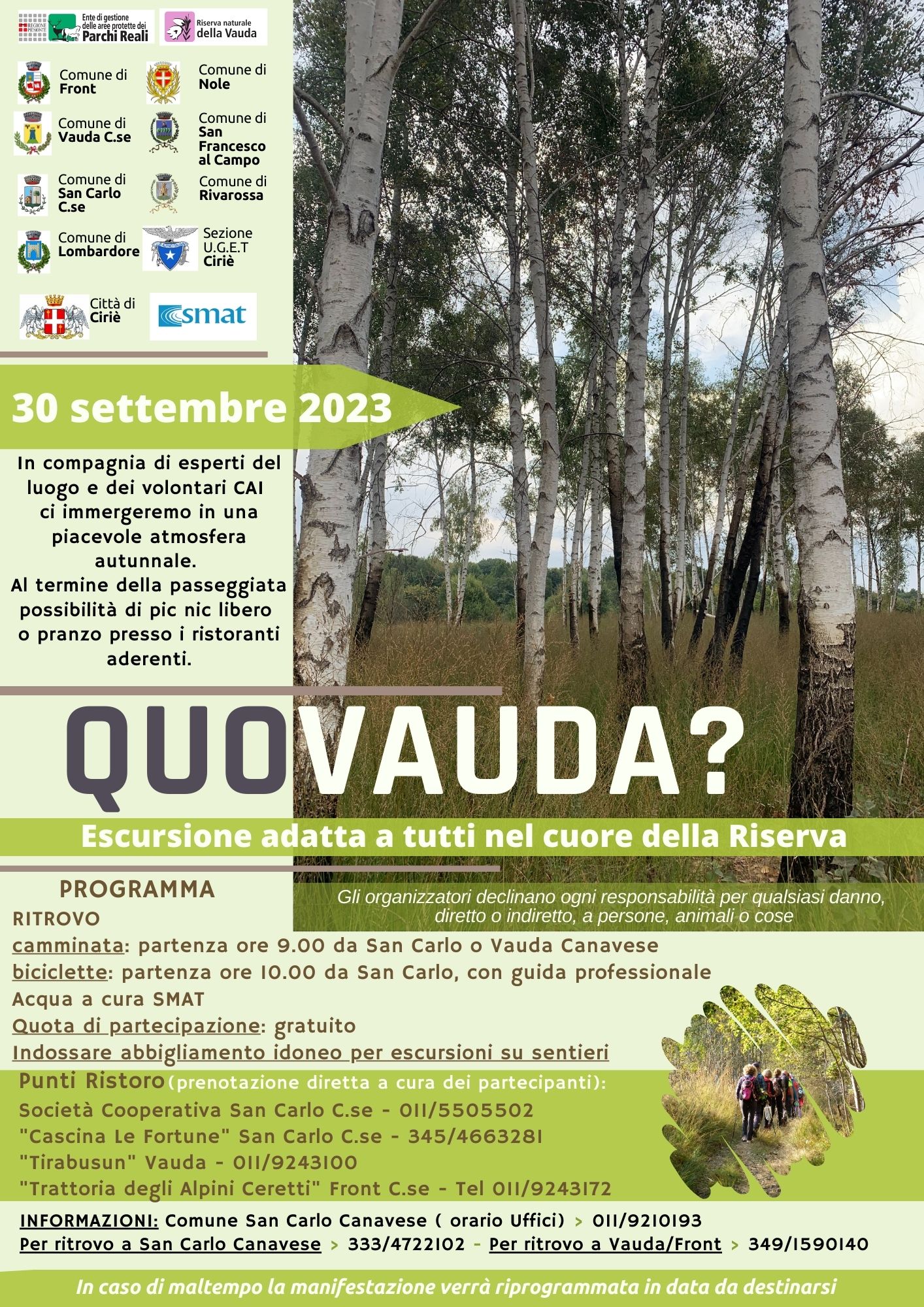 SABATO 30.09.2023 IN COMPAGNIA DI ESPERTI DEL LUOGO E DEI VOLONTARI DEL CAI, SARA' POSSIBILE PASSEGGIARE NEL CUORE DELLA RISERVA DELLA VAUDA IMMERGENDOSI IN UNA PIACEVOLE ATMOSFERA AUTUNNALE.
