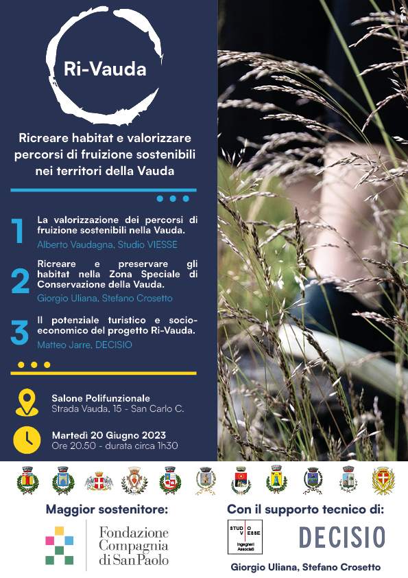 Il Comune di San Carlo Canavese organizza per martedì 20 giugno 2023 alle ore 21,00 presso il salone polifunzionale di strada Vauda 15 un incontro per presentare l'iniziativa "Ricreare habitat e valorizzare percorsi di fruizione sostenibile nei territori della Vauda"