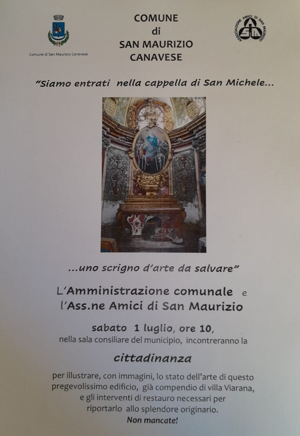 Appuntamento con la storia di San Maurizio Canavese e con un piccolo gioiello artistico e architettonico del nostro paese: sabato 1° luglio, alle ore 10 nella sala consiliare del municipio, si svolgerà un incontro aperto a tutti i cittadini per presentare le meraviglie della Cappella di San Michele e illustrare gli interventi di restauro necessari per riportarla all'originario splendore. L'evento, naturalmente, è a cura dell'Associazione Amici di San Maurizio.