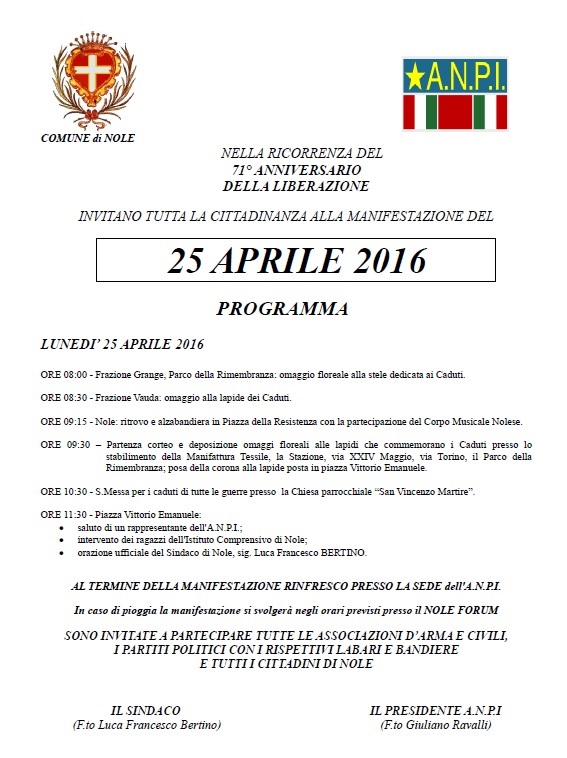 | Organizzazione | ANPI sezione di Nole |