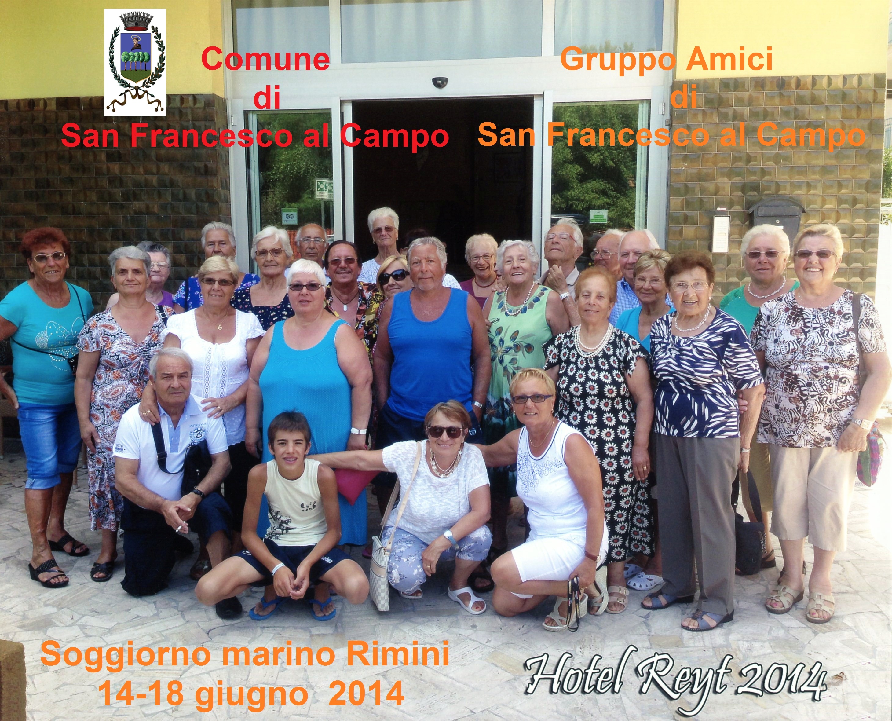 Le signore Vittorina Canato e Ida Gea si sono fatte carico dell’organizzazione sostituendo Giovanni Martinetto “storico” organizzatore del soggiorno che purtroppo per problemi personali non era più in grado di seguirne la realizzazione.Il soggiorno si è svolto dal 14 al 28 giugno 2014, presso l’Hotel Reyt di Rimini.I partecipanti sono stati 32.