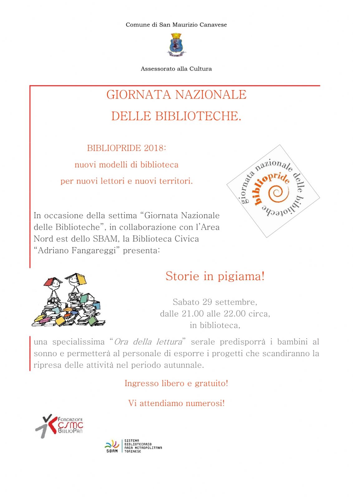 L'iniziativa è della Fondazione CSMC Bibliopan, in collaborazione con l'area Nord-Est dello SBAM (Sistema Bibliotecario Area Metropolitana Torinese), in occasione della settima Giornata Nazionale delle Biblioteche. L'ingresso, naturalmente, è libero e gratuito, fino a esaurimento posti.