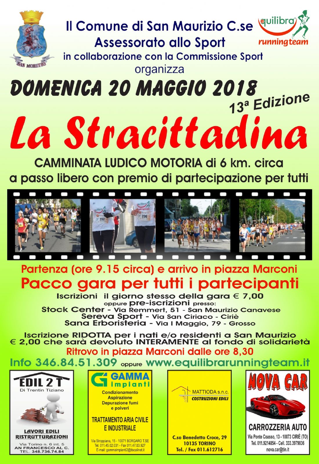 Si svolgerà domenica 20 maggio la tredicesima edizione della Stracittadina, l'ormai tradizionale camminata ludico motoria di 6 chilometri a passo libero aperta a tutti e con premi per tutti. L'organizzazione è a cura dell'Assessorato allo Sport del Comune di San Maurizio Canavese, in collaborazione con la Commissione Sport. Il ritrovo sarà in piazza Marconi dalle ore 8.30. La partenza è prevista per le ore 9.30.