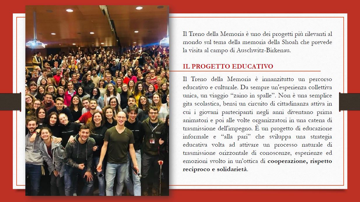 Ricordiamo infatti che anche per il 2019 il Comune di San Maurizio Canavese aderisce al Treno della Memoria e che per garantire a tutti le stesse possibilità di partecipare ha emesso un apposito bando, che scade il 10 novembre 2018.