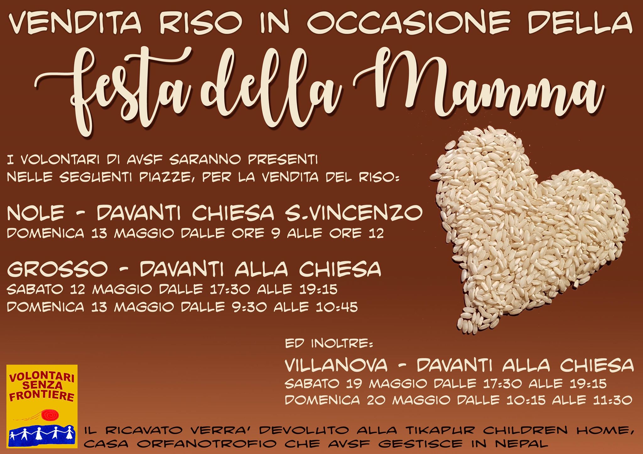VENDITA RISO IN OCCASIONE DELLA FESTA DELLA MAMMA