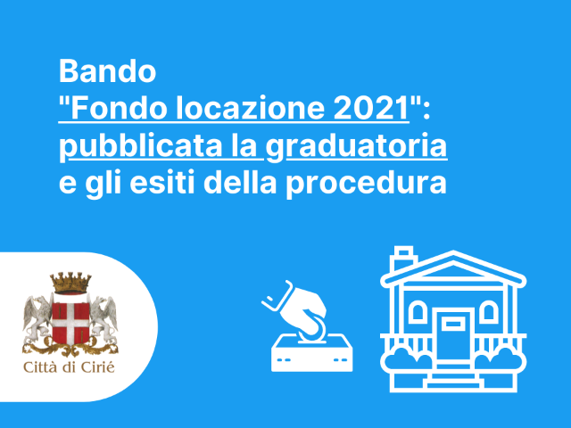 Il Comune di Cirié, in qualità di Comune Capofila ambito territoriale n. 36 (comprendente i comuni di Barbania, Cafasse, Cirié, Grosso, Mathi, Nole, San Carlo Canavese, Vallo Torinese, Varisella, Vauda Canavese, Villanova Canavese), con Determina del Responsabile dell’Ufficio Politiche Sociali n. 525 del 08/04/2022, ha approvato l’elenco definitivo delle domande di partecipazione al Bando "Fondo Nazionale per il Sostegno all'accesso alle abitazioni in locazione anno 2021" con indicazione degli esiti della procedura.