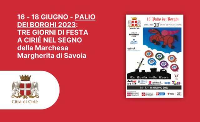 Venerdì16 giugno prenderà il via a Ciriè il PALIO DEI BORGHI che coinvolgerà tutta la Città sino a domenica 18 giugno