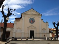 Anticamente dedicata alla Madonna di Loreto, come cappella campestre è già citata nel 1556. Fu sempre curata ed ingrandita, fino ad essere riconosciuta Parrocchia nel 1915 ed intitolata al SS. Nome di Maria (si celebra la festa la seconda domenica di settembre). L’aspetto complessivo della chiesa attuale è il risultato dei lavori che si protrassero per tutto il 1800; sopra la porta di ingresso nel 1921 è stato sistemato l’organo. Anche il campanile è stato rifatto poiché il precedente minacciava di cadere e nel 1760 fu abbattuto. L’elegante facciata tripartita da lesene è stata poi restaurata, eliminando un piccolo portale d’ingresso. Anche il piazzale e la retrostante canonica hanno subito radicali lavori.